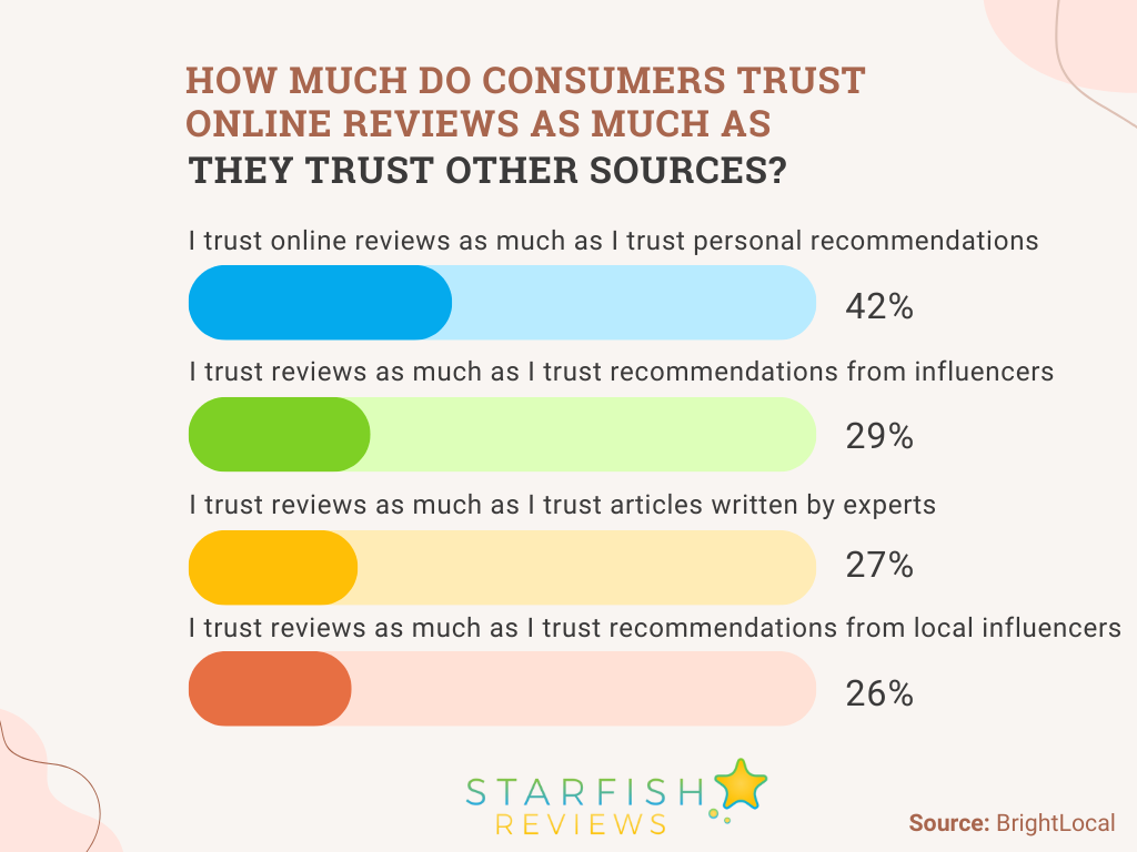 42% of consumers say they trust online reviews as much as they trust personal recommendations from friends and family.